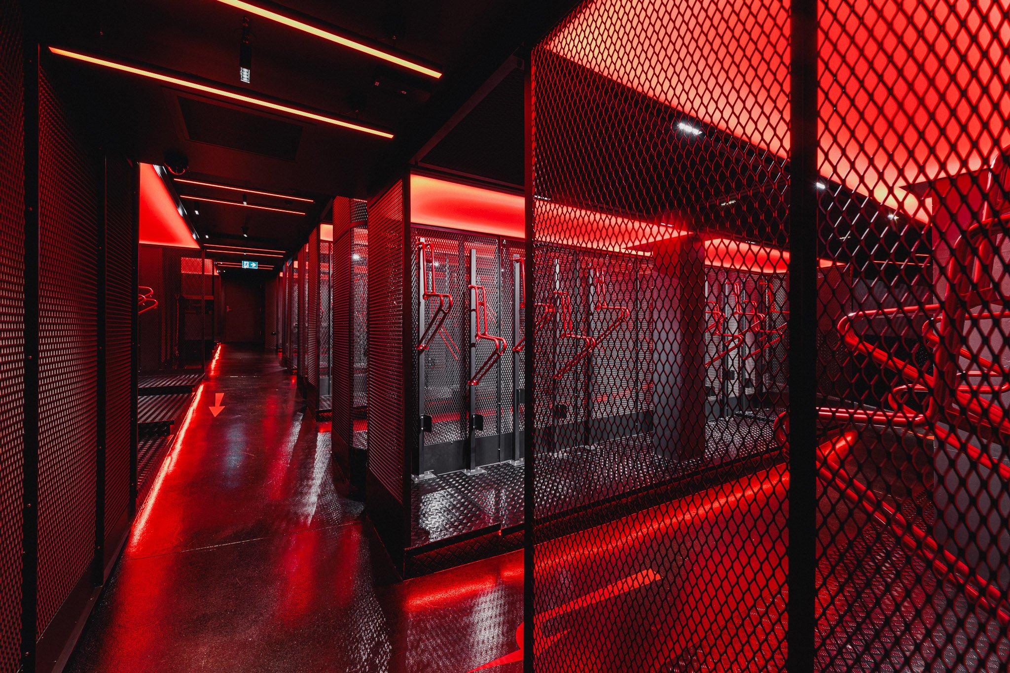 “From arrival, it is clear that the Southpoint EOT offers something distinct. Visitors are immediately greeted by a striking backlit glass brick wall, illuminated by colour-changing LED strips that shift in coordination with other lighting elements to create a dynamic and ever-changing visual experience. A key consideration was ensuring compliant lighting levels across the space, regardless of the colour setting. For example, red light alone could not meet minimum lighting levels, so supplementary lighting was introduced to meet code requirements.
